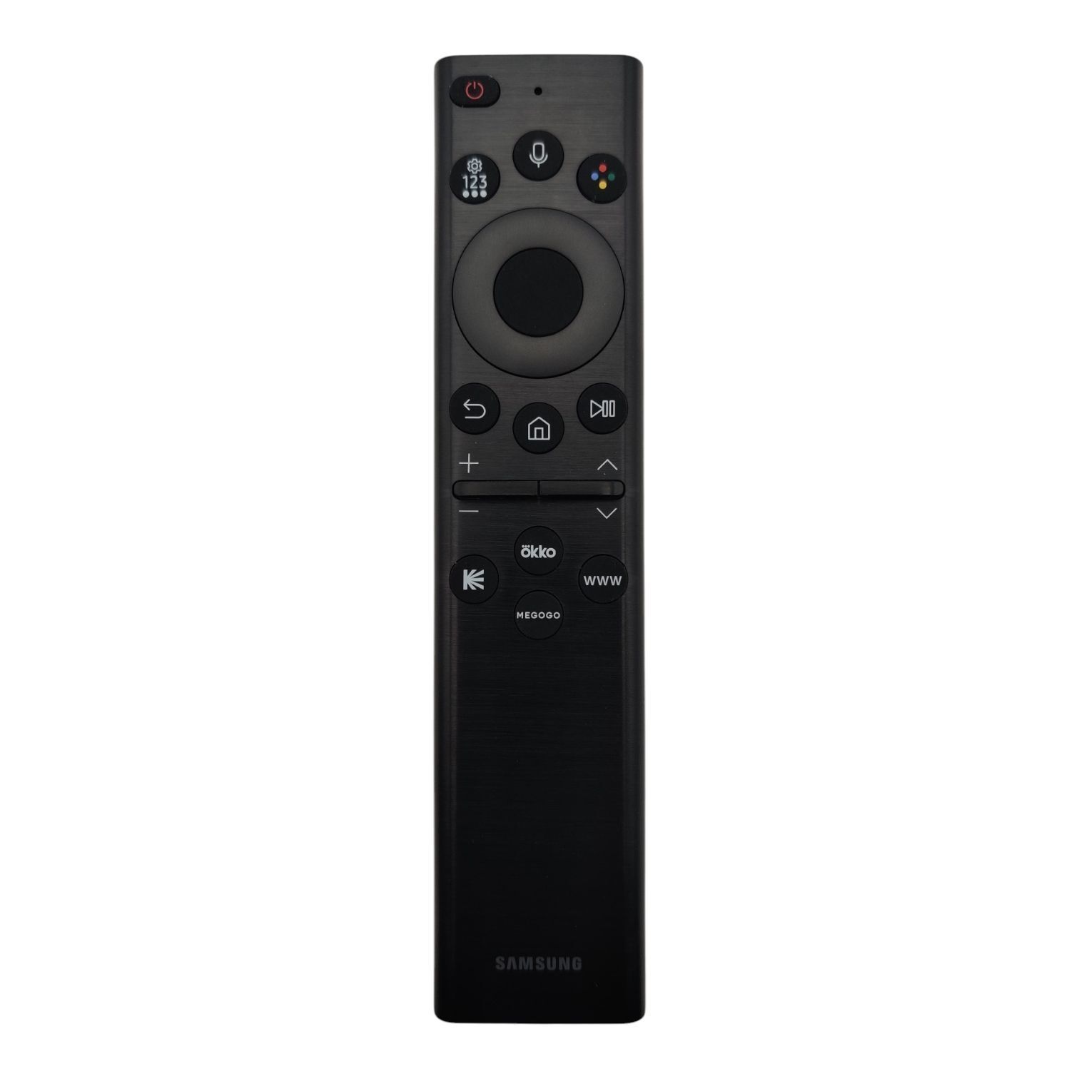Samsung BN59-01386G – интеллектуальный оригинальный Smart Control пульт для Smart TV с голосовым управлением и солнечной батареей (SolarCell Remote). Позволяет управлять Smart-телевизорами 2022 годов выпуска, которые поставляются для российского рынка, о чем свидетельствует наличие кнопок Кинопоиск, OKKO, Megogo.Важно: Информация для владельцев внешне похожих пультов в металлическом корпусе предыдущих годов выпуска: несмотря на визуальное сходство, пульт Samsung BN59-01386K изготавливается из пластика! (как и все голосовые Smart Control пульты 2021-2022 годов).Сопряжение с телевизоромСопряжение, как правило, осуществляется автоматически, при первом включении. Но в случае если это не произошло, выполните следующие действия:1) направьте девайс на переднюю панель своего телевизора;2) нажмите одновременно кнопки и ;3) удерживайте кнопки более 3-х секунд;4) на экране появится сообщение об успешном сопряжении.Помимо стандартных функций, интеллектуальный пульт позволяет: активировать Голосового помощника, переходить в режим Multi View, включать Игровой режим и комфортно перемещать фокус.