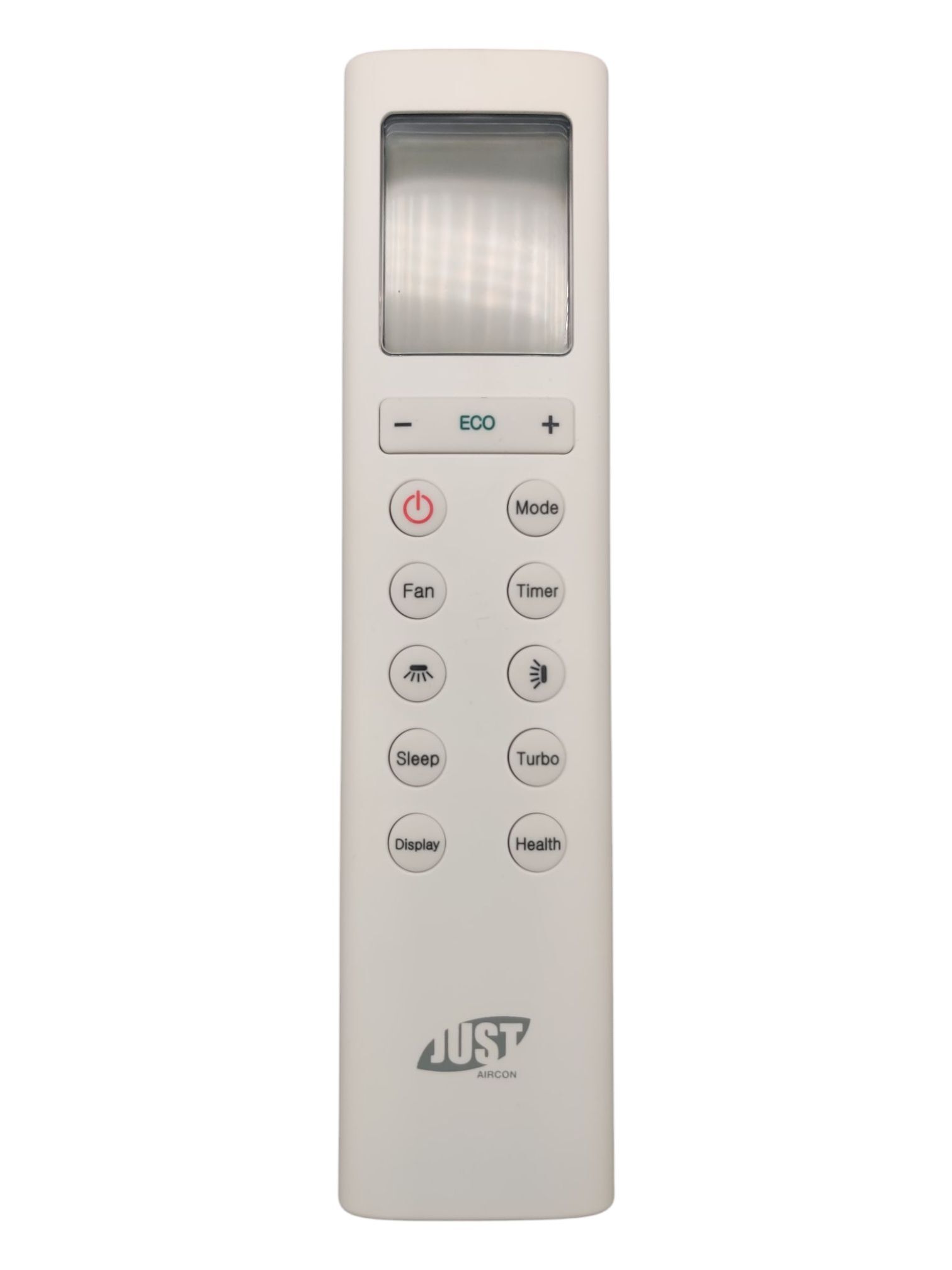 Многофункциональность: Управляйте всеми функциями кондиционера: переключайте режимы (MODE) — охлаждение, обогрев, вентиляция, осушение; регулируйте скорость вентилятора (FAN); устанавливайте таймер (TIMER); активируйте энергосберегающий режим (ECO), режим сна (SLEEP), турбо-режим (TURBO), функцию здоровья (HEALTH) и управляйте подсветкой (DISPLAY).